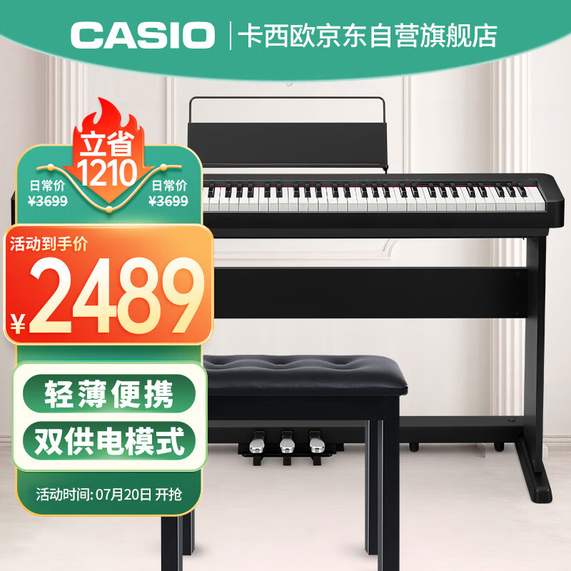 卡西欧(CASIO)电钢琴EPS130黑色电子数码钢琴88键重锤初学单机+木琴架+礼包价格:3699.00元!