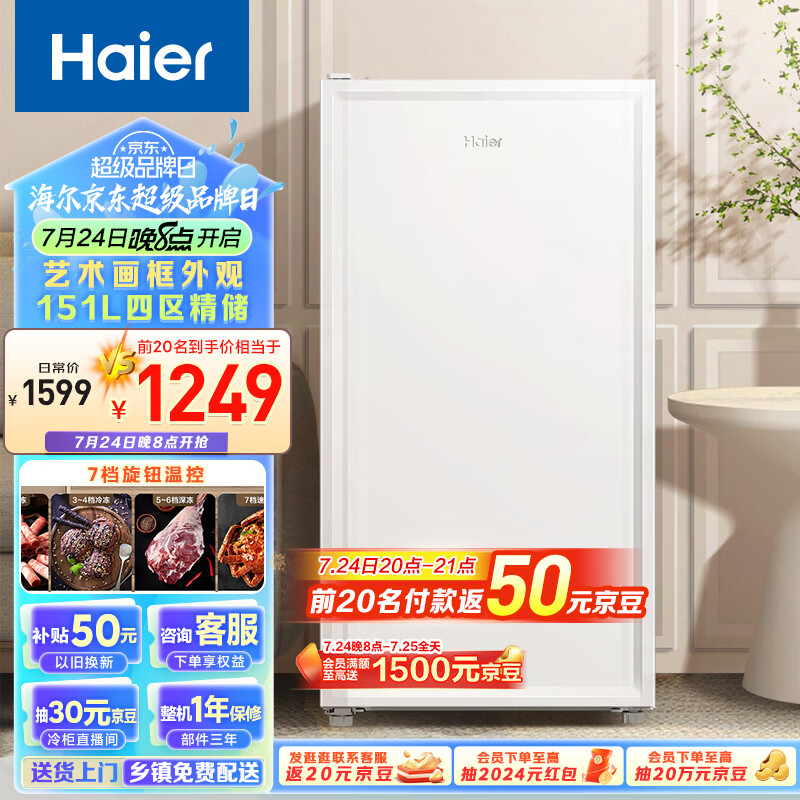 海尔(Haier)151升家用立式冰柜母乳冷冻柜抽屉式冷柜画框小冰箱小冰柜家用小型冰箱BD-151GHW9以旧换新价格:1299.00元!