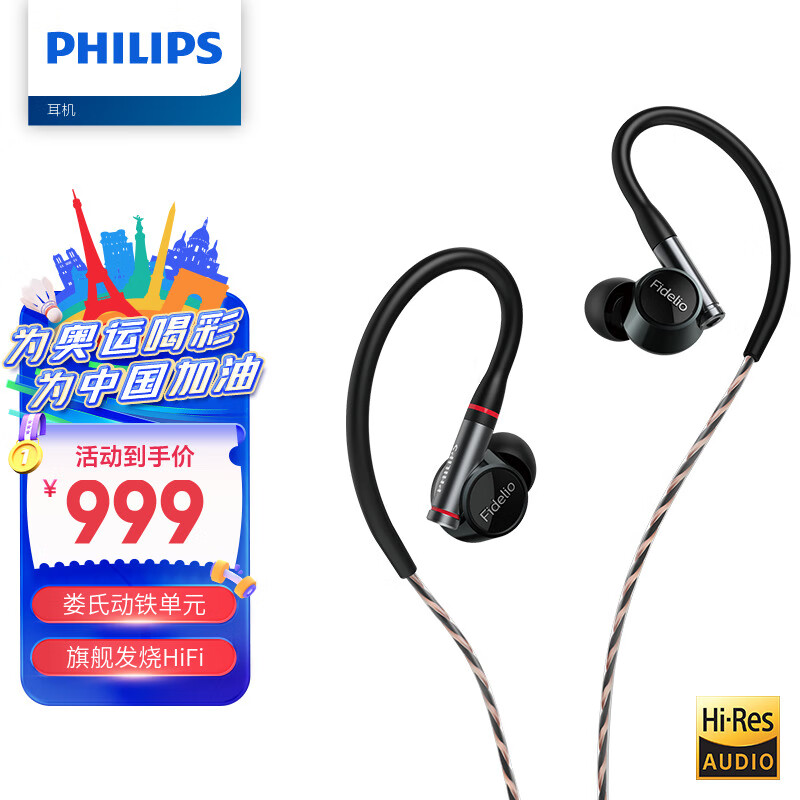 飞利浦(PHILIPS)有线耳机入耳式HiFi旗舰耳机一动圈两动铁高保真音质发烧耳机手机可直推3.5mm音频接口S3价格:999.00元!