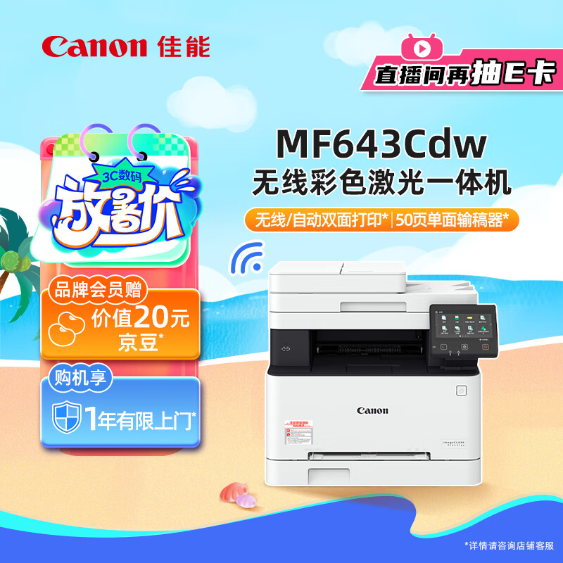 佳能(Canon)iC MF643Cdw A4幅面无线彩色激光多功能一体机(打印/复印/扫描/自动双面/自动输稿器 商用)价格:3729.00元!