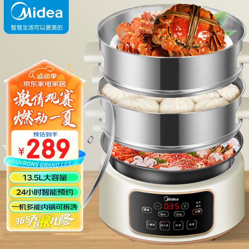 美的(Midea)电蒸锅 电煮锅 电火锅 多用途锅家用蒸包子锅电锅三层13.5L大容量分体式可拆洗MZ-ZGC2805价格:289.00元!
