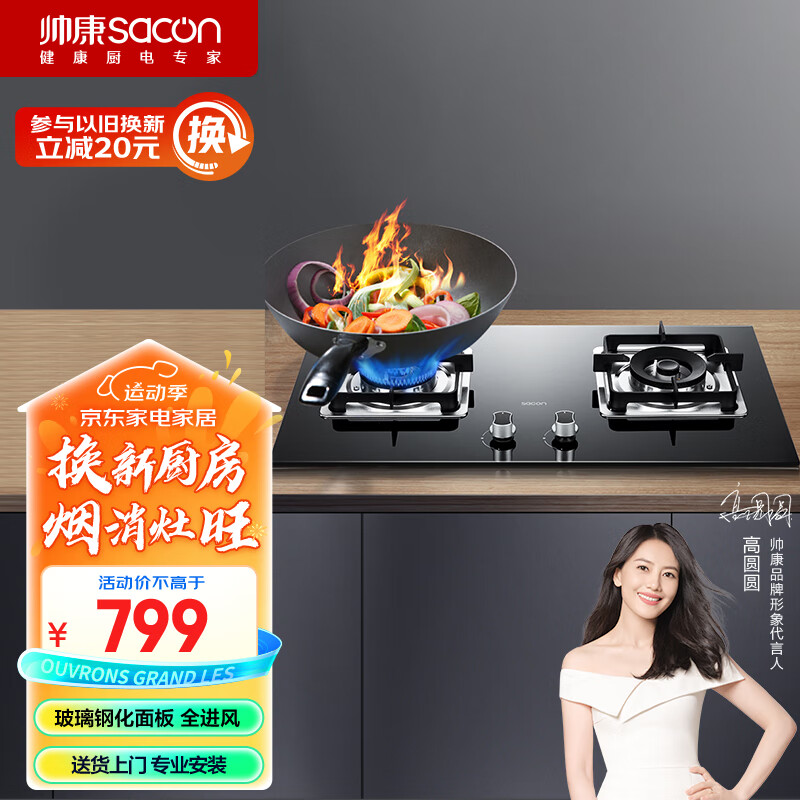 帅康(Sacon)燃气灶 5.0kW大火力猛火灶 煤气灶双灶双眼灶 家用嵌入式台式两用灶具 天然气灶JZT-E5-61B价格:799.00元!