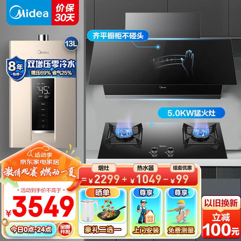 美的(Midea)侧吸抽油烟机灶具烟灶多件套装燃气热水器家用烟灶燃热厨房三件套J37+Q330+13NT1S天然气价格:3549.00元!