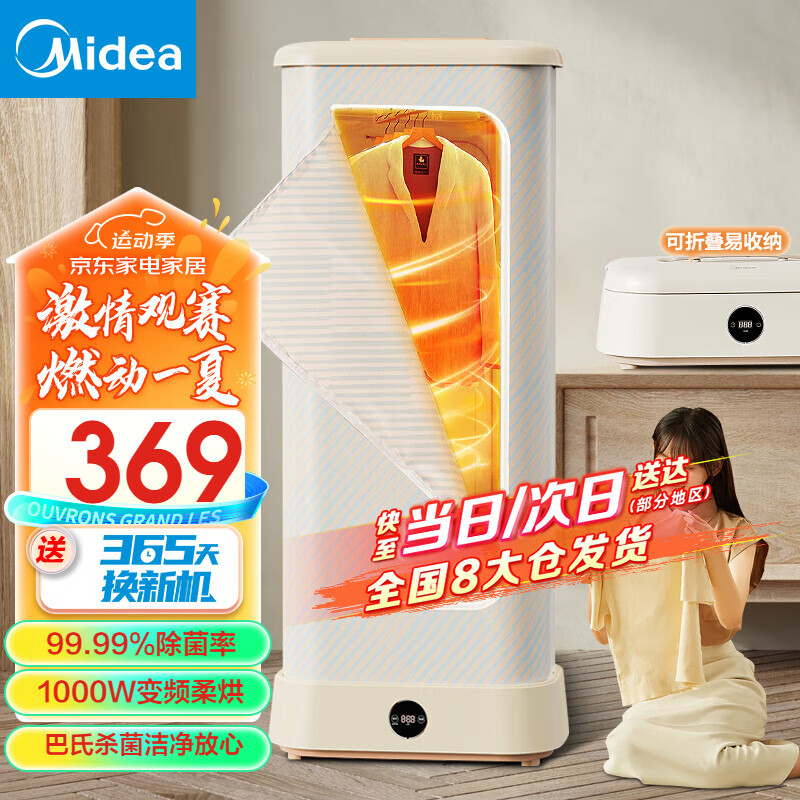 美的(Midea)可折叠干衣机烘干机家用折叠收纳便携小型风干机变频暖风布罩类婴儿烘干机烘干内衣便携烘干机 【巴氏+高温除菌】HBGD10D1价格:499.00元!