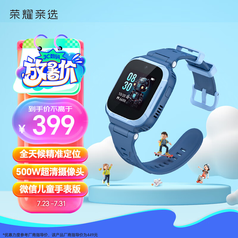 荣耀亲选 zowbot儿童手表2 电话手表 全天候精准定位 500W超清摄像头 远程管控 曙光蓝 男生价格:399.00元!