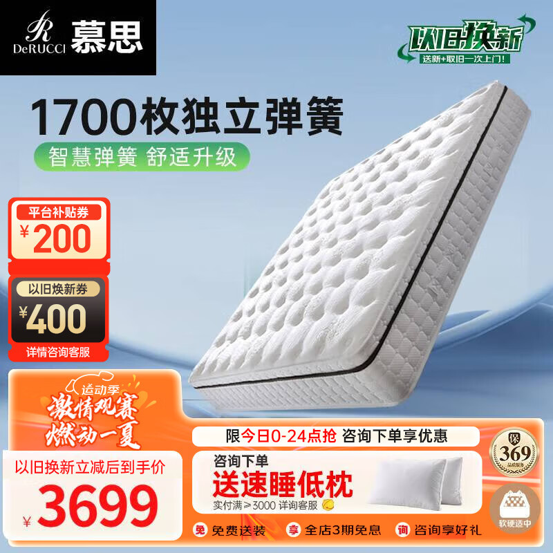 慕思(de RUCCI)进口乳胶Smart智慧弹簧慕斯席梦思床垫睡眠精灵美脊版 1.8*2米价格:5499.00元!