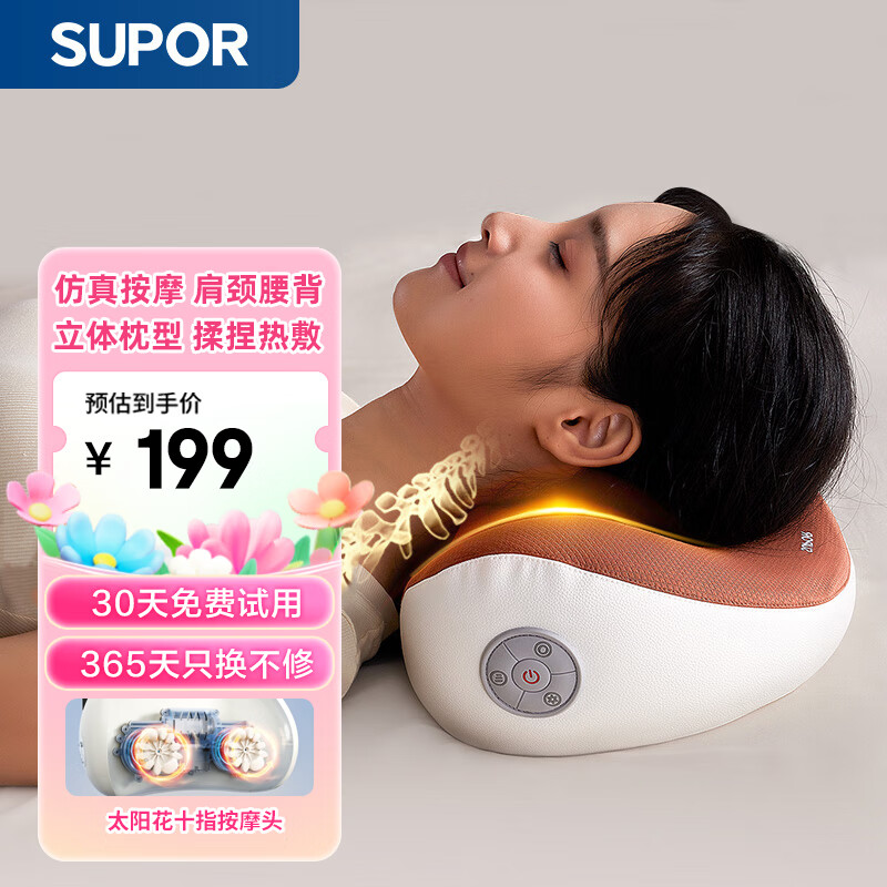 苏泊尔颈椎按摩器肩颈按摩仪按摩枕头肩颈腰背腿足全自动揉捏全身情人节礼物生日送父母送老人S060701-1价格:229.00元!