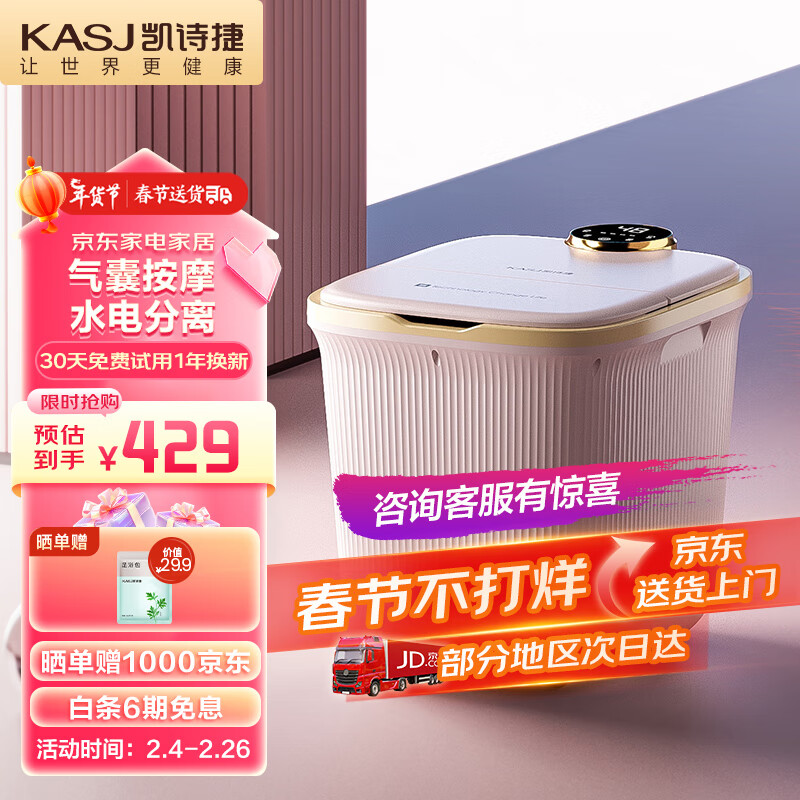 凯诗捷(KASJ)泡脚桶足浴盆全自动气囊按摩洗脚盆电动加热泡脚盆洗脚桶 生日礼物礼品送父母长辈 K3粉色价格:489.00元!