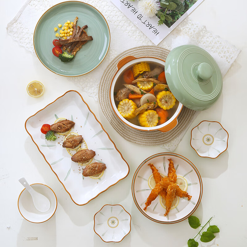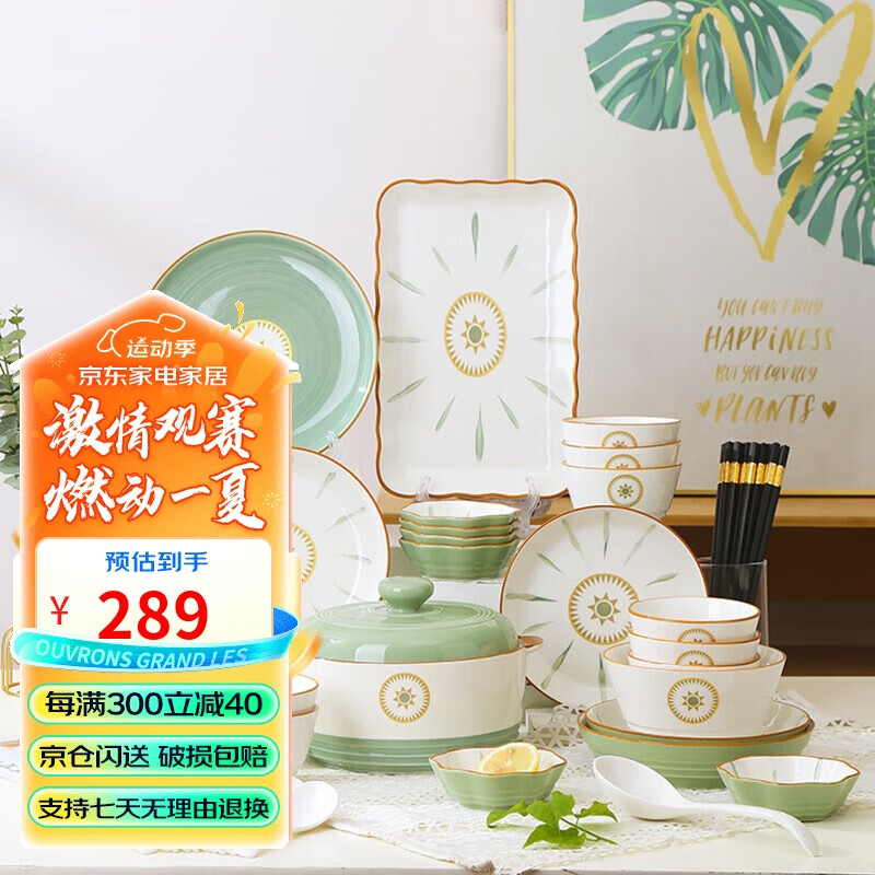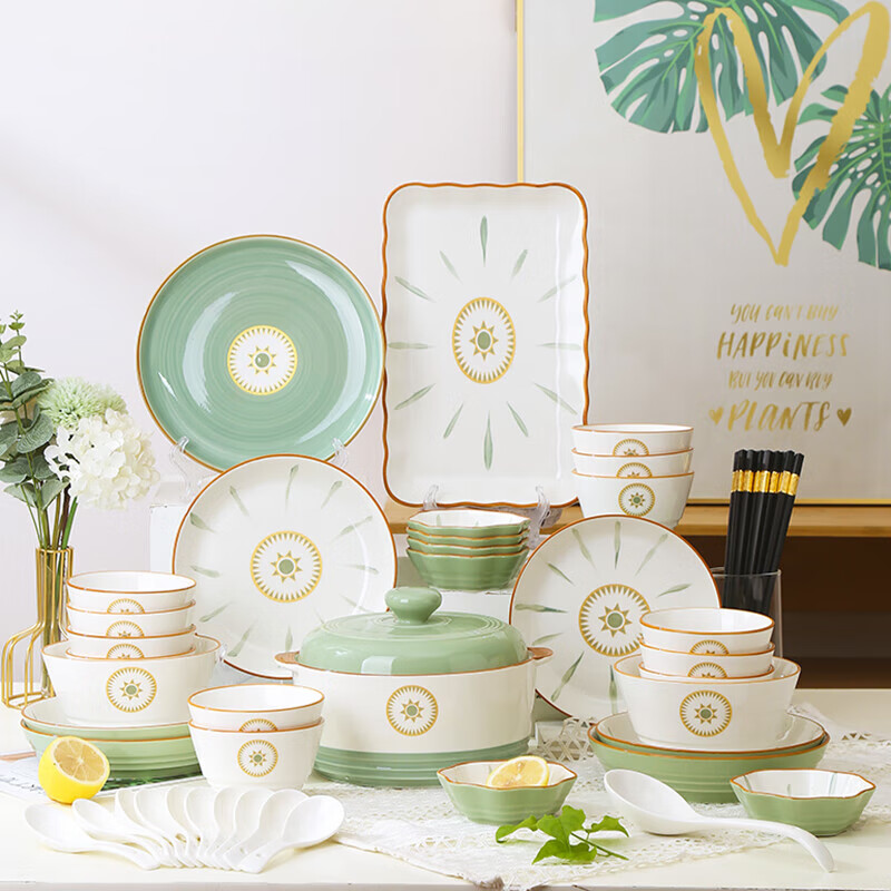 裕行北欧陶瓷餐具碗碟套装色釉套餐碗筷盘子乔迁送礼维也纳52头彩盒装价格:329.00元!
