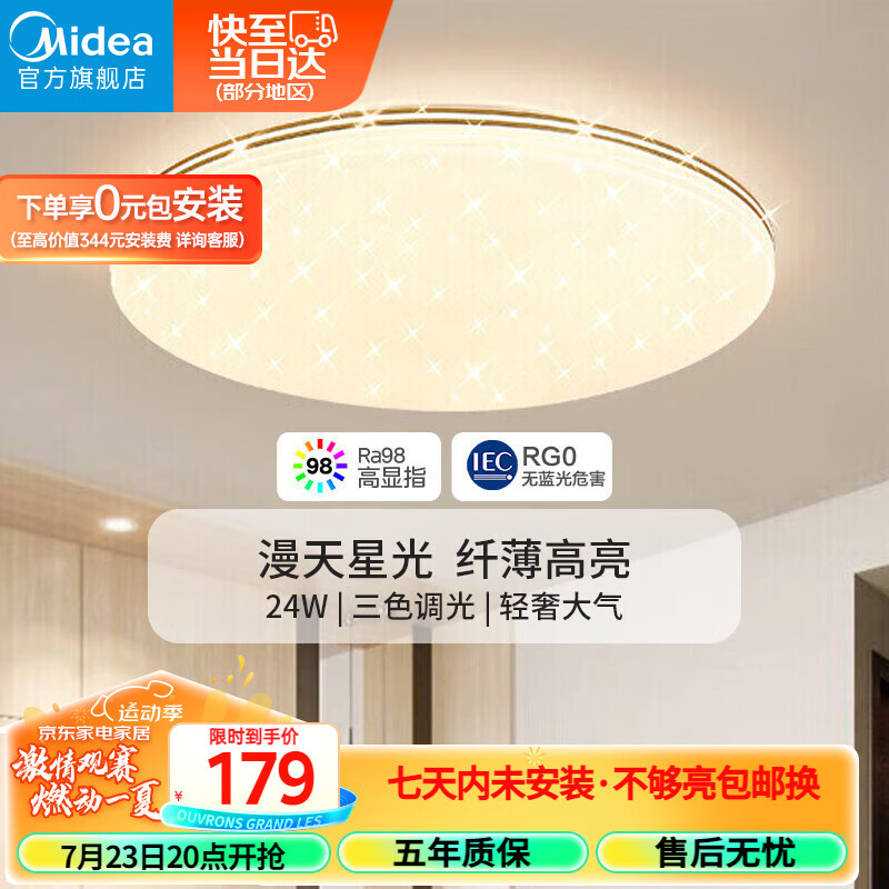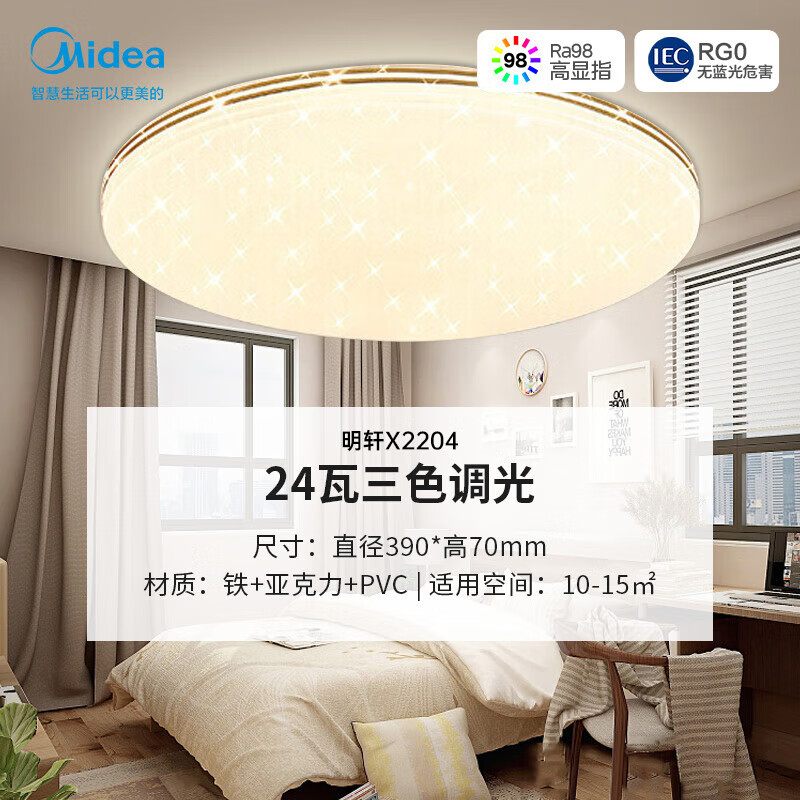 美的(Midea)LED吸顶灯卧室书房餐厅温馨灯饰现代简约北欧圆形24瓦三段调色价格:179.00元!