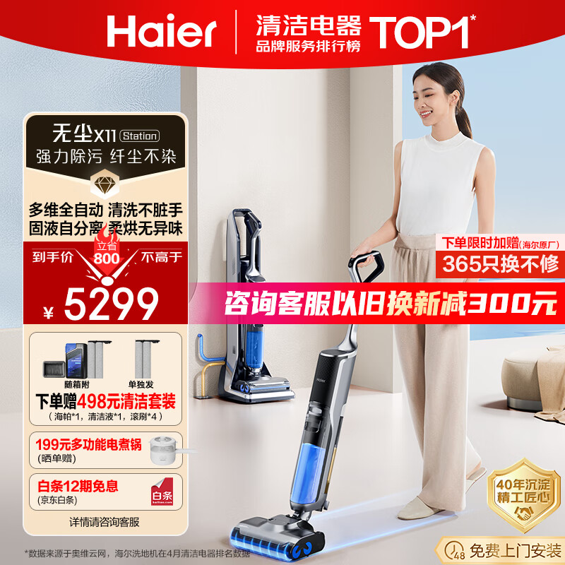 海尔家用洗地机吸拖一体拖地机洗拖扫地机器人扫拖一体自动清洗全自动吸尘器双滚刷基站款X11Station价格:5099.00元!