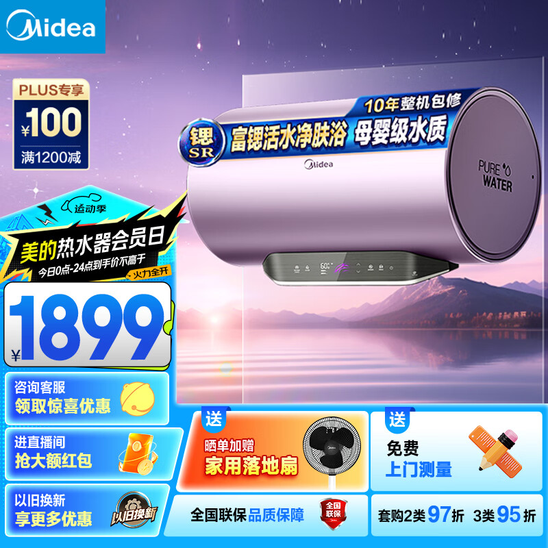 美的(Midea)TECH活水系列电热水器60升富锶养肤温泉浴免换镁棒一级变频家用储水式以旧换新F6025-RW9A(HE)价格:2099.00元!