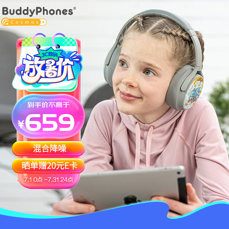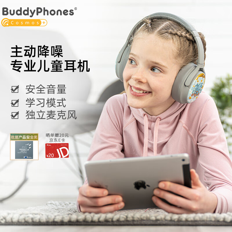 onanoff BuddyPhones儿童耳机头戴式主动降噪 大耳包蓝牙无线网课学习学生耳机 持久续航 Cosmos+大象灰价格:639.20元!