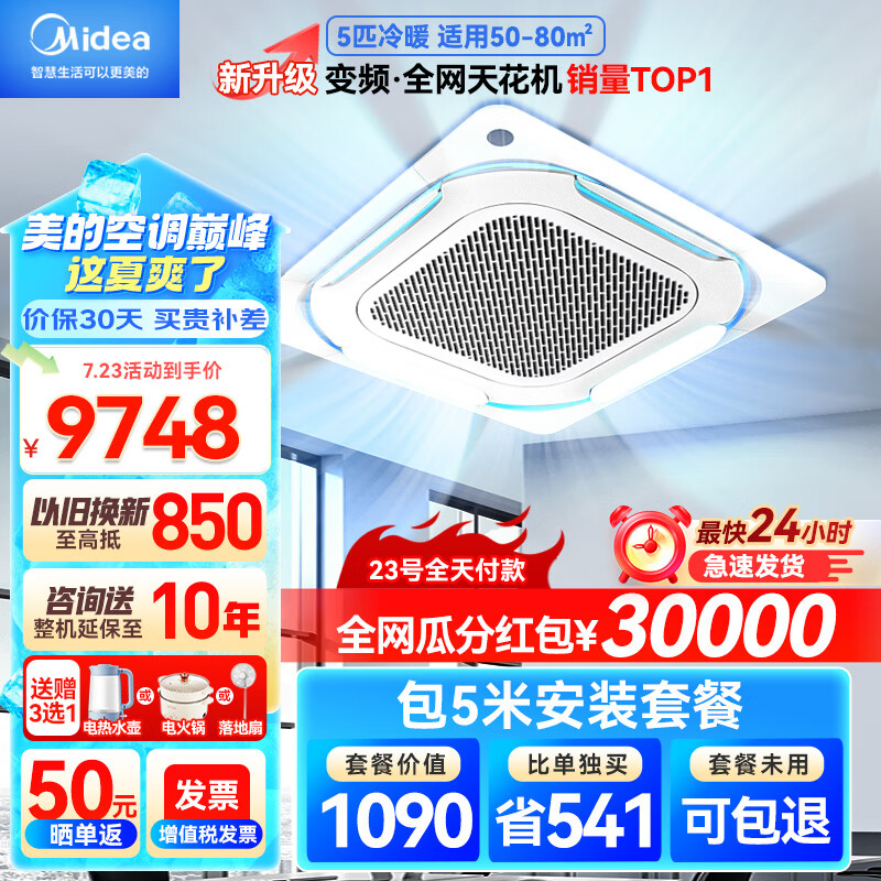 美的(Midea)5匹天花机空调吸顶吊顶空调 商用中央空调嵌入式一拖一380v 包5米铜管安装RFD-120QW/BSDN8Y-D(B3)价格:9748.00元!