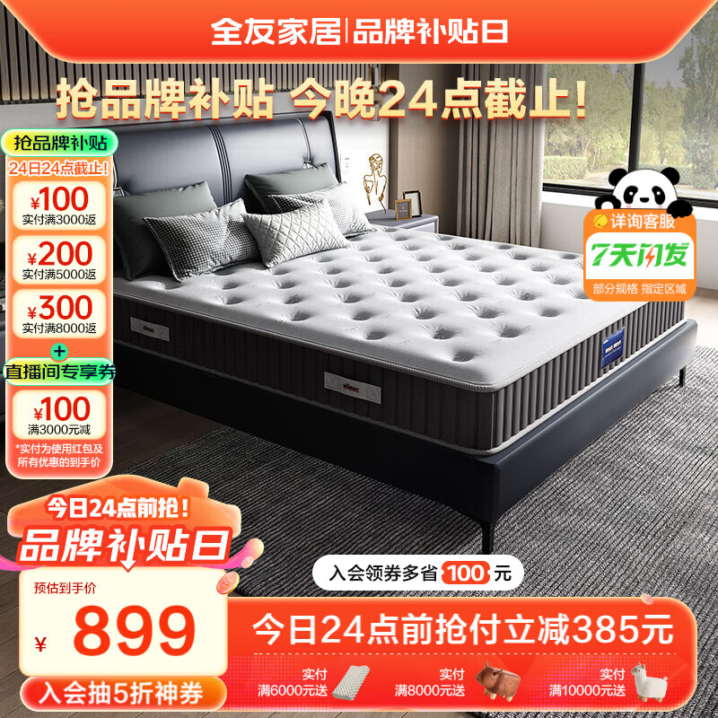 全友家居 床垫卧室3D黄麻床垫邦尼尔弹簧偏硬睡感1.5米床垫子105169Ⅱ价格:1284.29元!