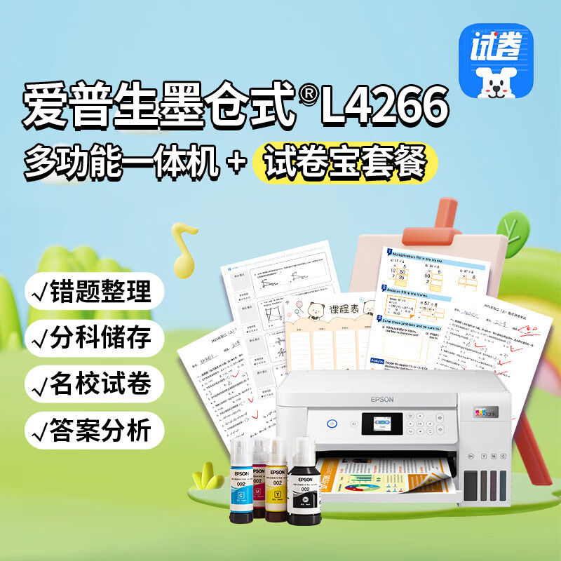 爱普生(EPSON) 墨仓式 L4266多功能一体机+试卷宝套装(名校试卷,答案分析,错题整理)价格:1599.00元!