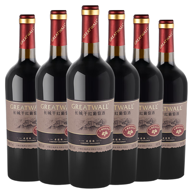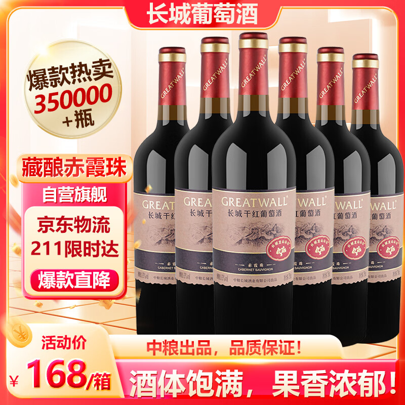 长城(GreatWall)红葡萄酒 龙山山谷赤霞珠干红750ML*6瓶整箱装(原箱包装)价格:168.00元!