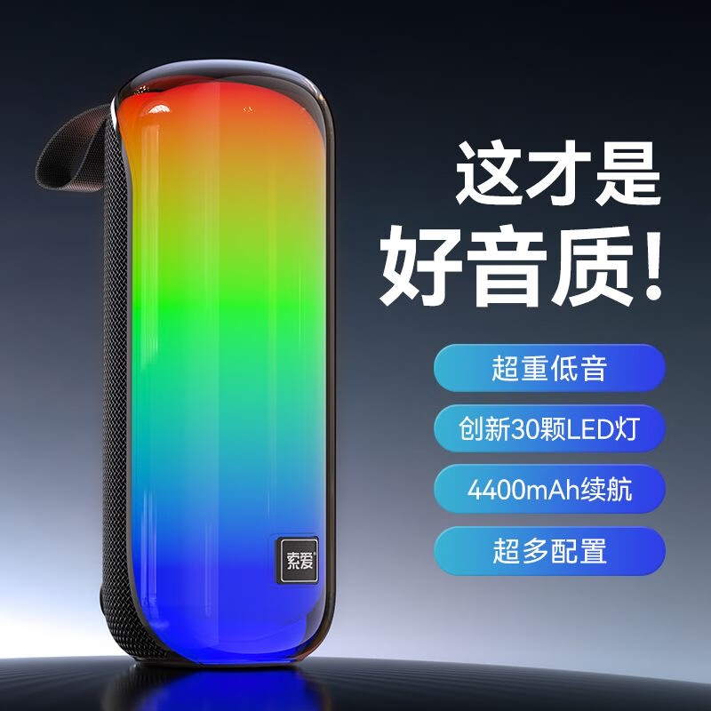 索爱(soaiy)S58MAX蓝牙音箱电脑音响重低音炮家用无线喇叭车载迷你桌面U盘户外炫彩便携大功率游戏收款价格:159.00元!