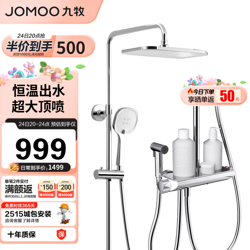 九牧 JOMOO 淋浴花洒套装 除垢喷枪恒温淋浴器26168-644/1B-1价格:1199.00元!