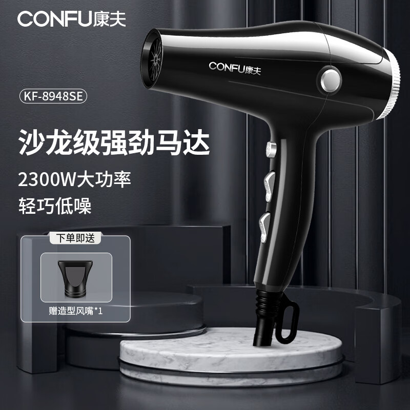 康夫(CONFU)家用电吹风机2300W大功率恒温护发 强劲大风力速干 发廊理发店吹风筒 KF-8948SE价格:129.90元!