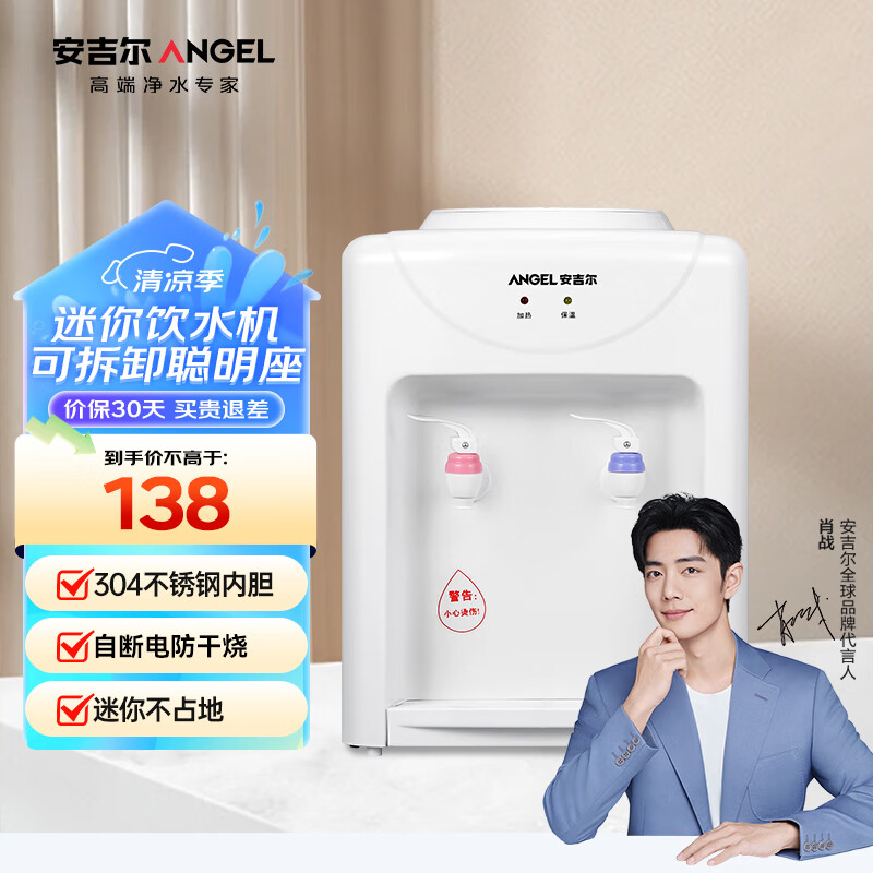 安吉尔饮水机小型家用客厅办公迷你温热多用型上置式台式桌面内胆加热抽水器桶装水 Y1416TK价格:138.00元!