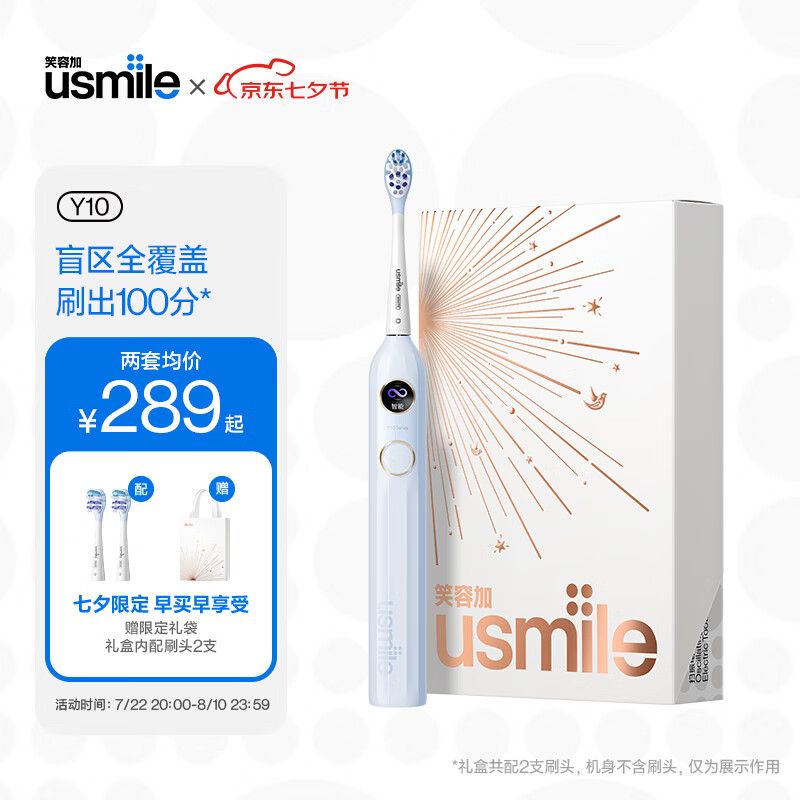usmile笑容加电动牙刷 成人声波震动电动牙刷 情侣款送男友/送女友 Y10净蓝 七夕情人节礼物价格:339.00元!