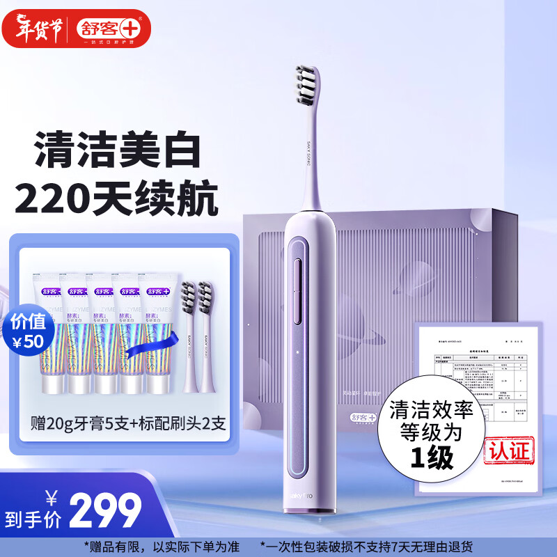 舒客情侣电动牙刷智能换区清洁成人/学生送男友/女友软毛护龈5档声波交互提醒GT2紫【情人节礼物】价格:329.00元!