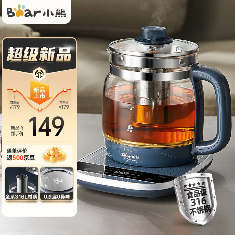 小熊(Bear)养生壶 煮茶壶 316L不锈钢恒温壶花茶壶 办公家用保温电热水壶1.5L大容量YSH-M15K6 可拆卸茶篮价格:149.00元!