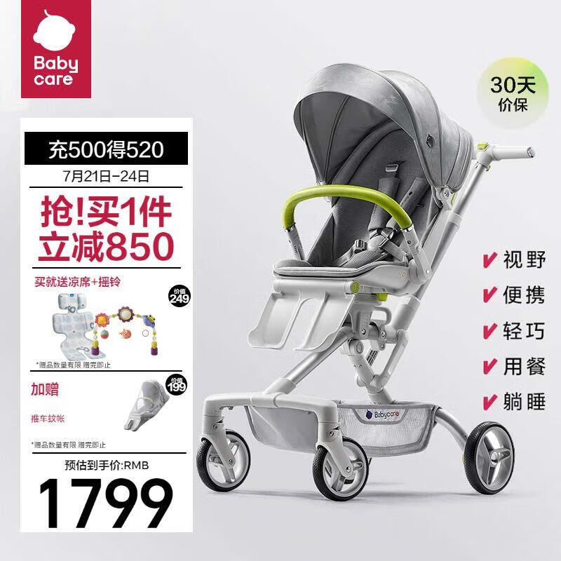 babycare头等舱婴儿推车高景观遛娃神器轻便可折叠可坐躺双向溜娃 时光银价格:2649.00元!