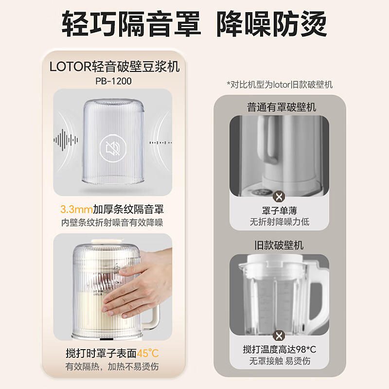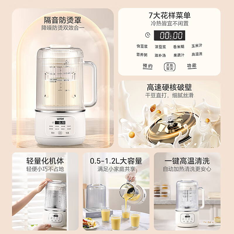 小浣熊破壁机家用豆浆机降噪长时预约加热保温迷你小型果汁榨汁高速搅拌料理机免洗免滤免泡辅食机早餐机 1.2L低音破壁机价格:309.00元!