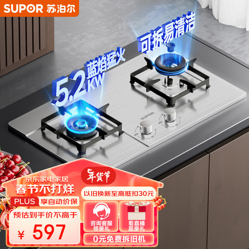 苏泊尔(SUPOR)燃气灶双灶家用 液化气双灶具5.2kW大火力猛火 易洁耐用不锈钢面板 台嵌两用灶具 DS35液价格:547.00元!