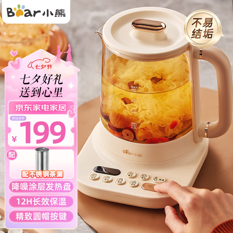 小熊(Bear)小气泡养生壶 办公室烧水壶 降噪涂层 1升迷你玻璃花茶壶 恒温水壶煮茶器煮茶壶 带滤网YSH-D10Y2价格:199.00元!