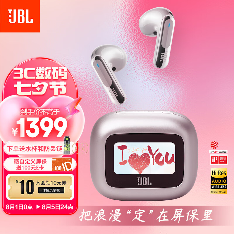 JBL LIVE FLEX 3晶彩荚【七夕礼物】真无线蓝牙耳机智能触屏自适应降噪音乐运动苹果华为小米耳麦银色价格:1599.00元!