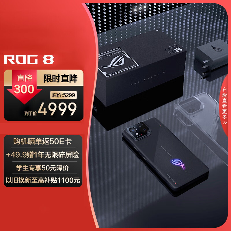ROG8 AI游戏手机 16+256 曜石黑 骁龙8Gen3 矩阵式液冷散热8.0 三星电竞屏 165Hz高刷 防抖云台 5G价格:4999.00元!