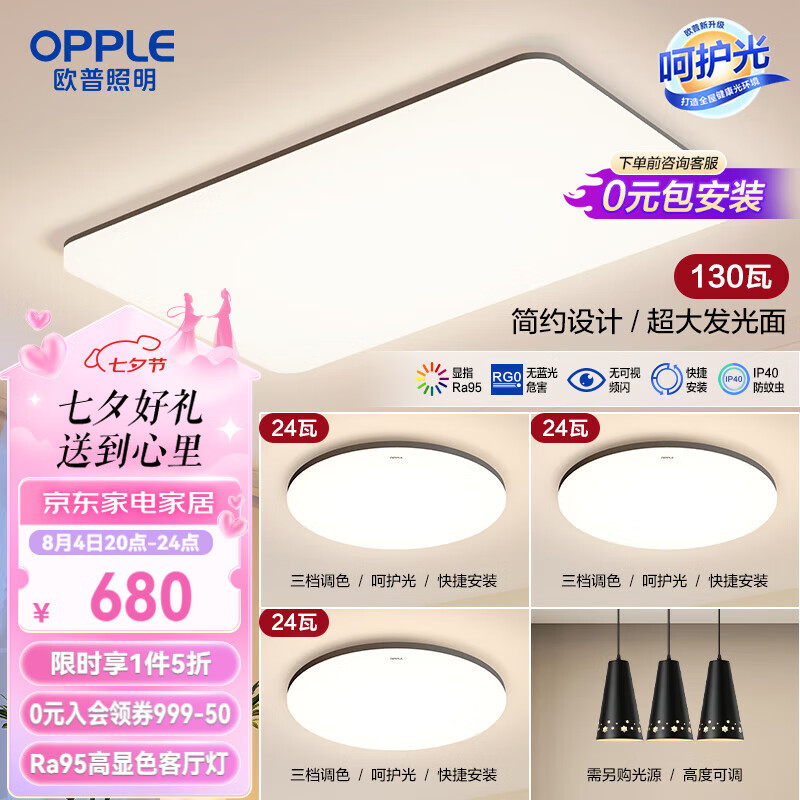 欧普照明(OPPLE) 吸顶灯客厅大灯可调光LED照明灯具灯饰套餐1呵护光价格:1360.00元!