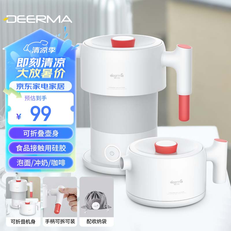 德尔玛 (Deerma) 电水壶折叠水壶 便携式烧水壶 便携旅行电热水壶 煮茶壶防烧干烧水壶DH202价格:99.00元!