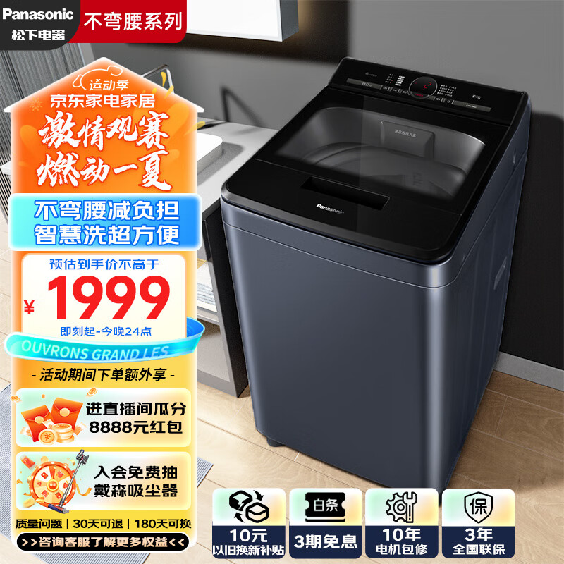 松下(Panasonic)波轮洗衣机全自动 8公斤大容量 一键智洗 柔洗护衣 桶自洁免清洗 不弯腰系列XQB80-U8VA价格:1999.00元!