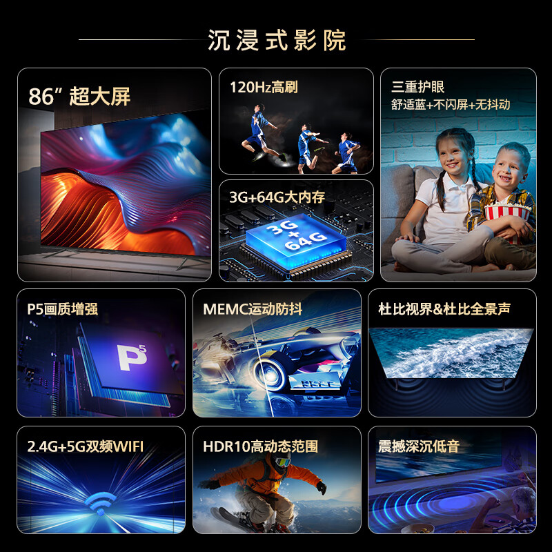 飞利浦(PHILIPS)86英寸4K超高清护眼高刷屏 家用客厅大屏影音 智能投屏液晶平板电视机86PUF8099/T3价格:6399.00元!