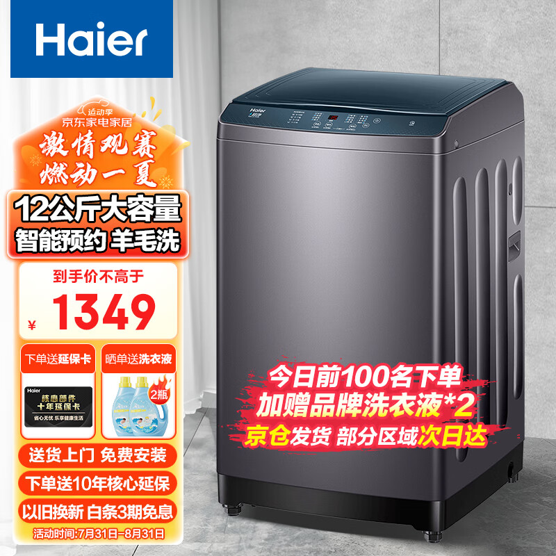 海尔(Haier)12KG波轮洗衣机全自动家用大容量智能预约自编程漂甩合一桶自洁羊毛洗脱一体机XQB120-Z5088[家电]价格:1349.00元!