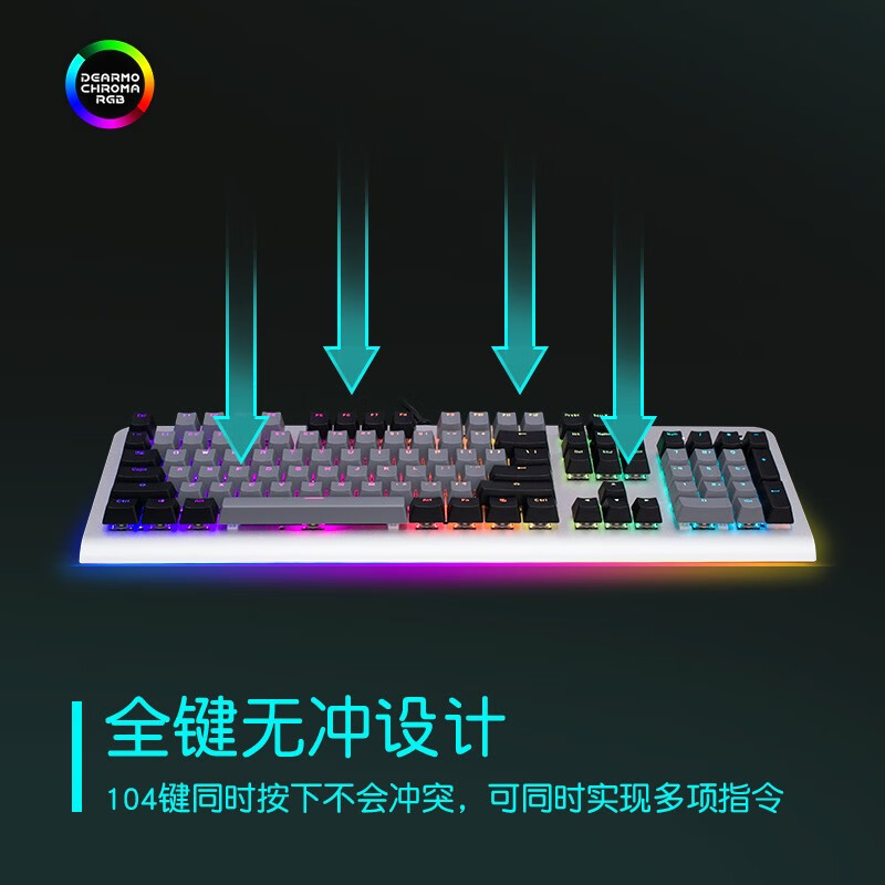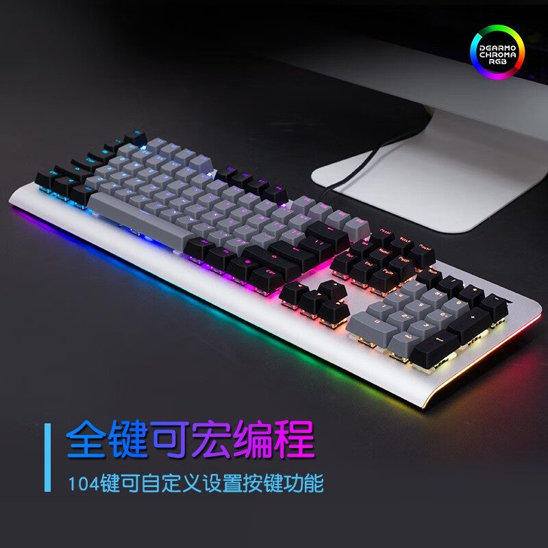 迪摩(DEARMO)F31机械键盘有线键盘游戏键盘104键RGB背光键盘吃鸡键盘电脑键盘 太空银 红轴价格:159.00元!