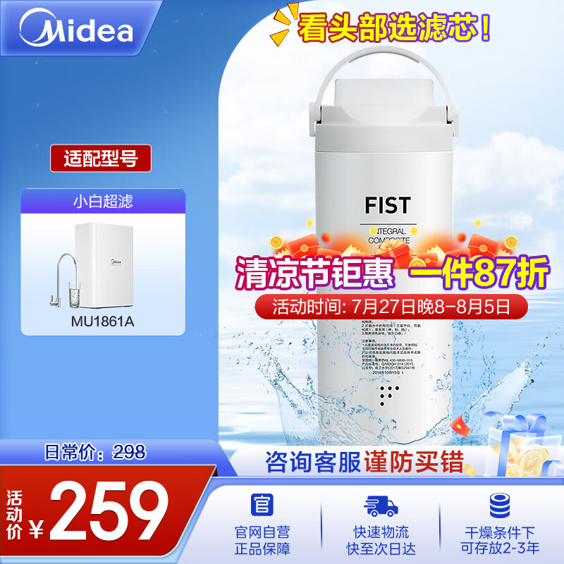 美的净水器滤芯—美的净水器滤芯 家用超滤机适用于小白超滤MU1861A净水器 原装净水器一体芯价格:259.00元!