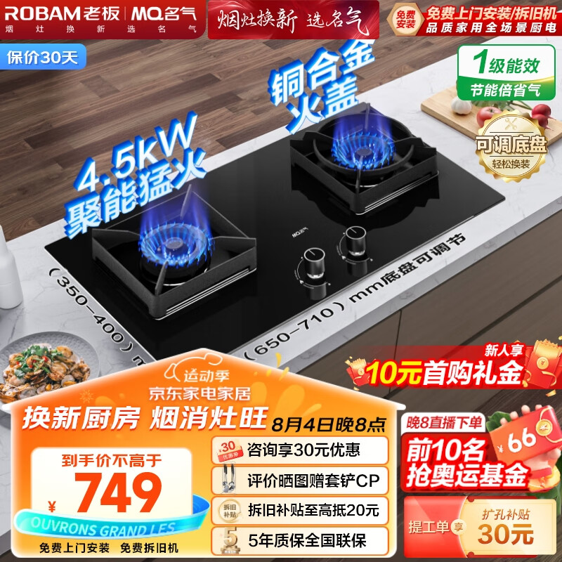 名气(MQ)老板燃气灶天然气嵌入式 家用5.0KW大火力猛火灶 煤气灶双灶 可调节底盘 钢化玻璃灶具 JZT-A6510B价格:749.00元!
