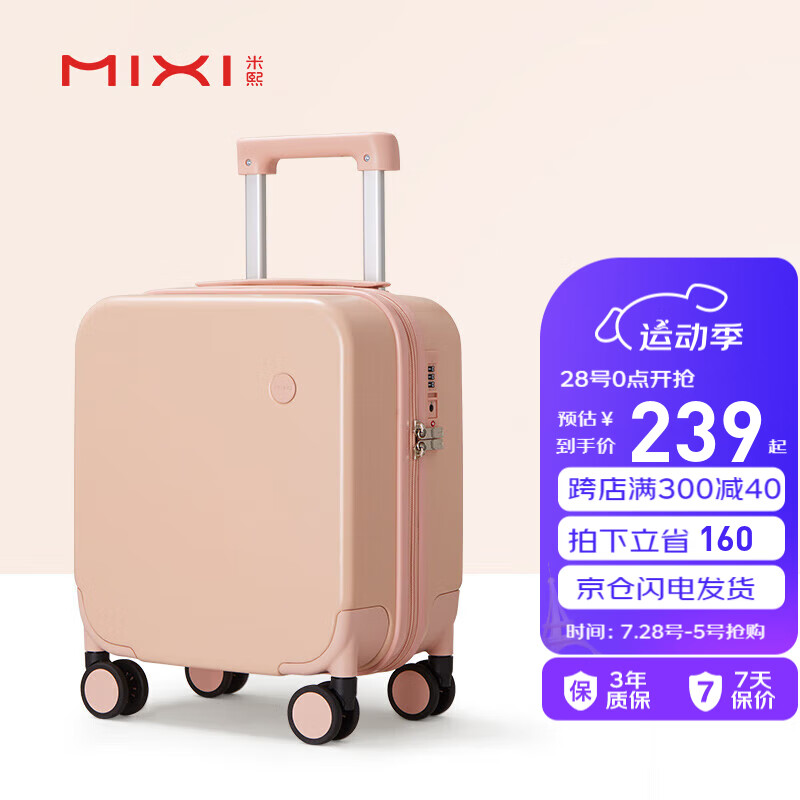 米熙mixi拉杆箱子行李箱小型登机箱14英寸飞机旅行箱包密码箱女粉色36价格:399.00元!