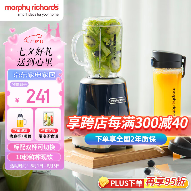 摩飞电器(Morphyrichards)榨汁机 便携式果汁机家用料理搅拌机梅森杯双杯水果电动榨汁杯MR9500价格:241.00元!