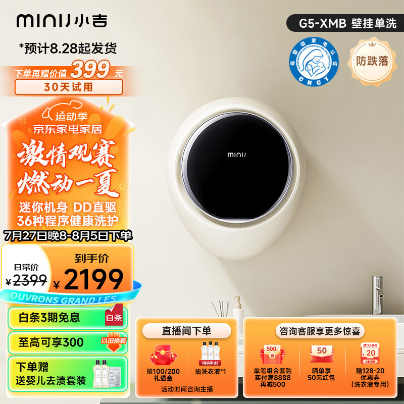 小吉(MINIJ)全自动母婴专洗 防跌落 1kg智能迷你机身壁挂洗衣机 小水滴 G5-XMB价格:2199.00元!