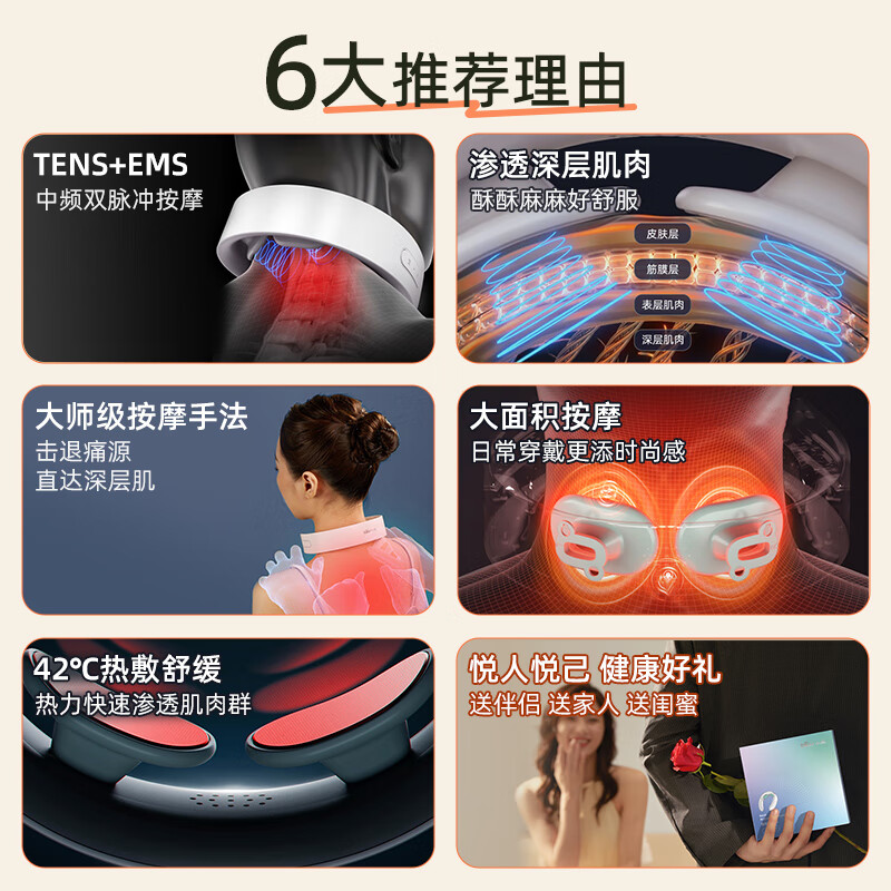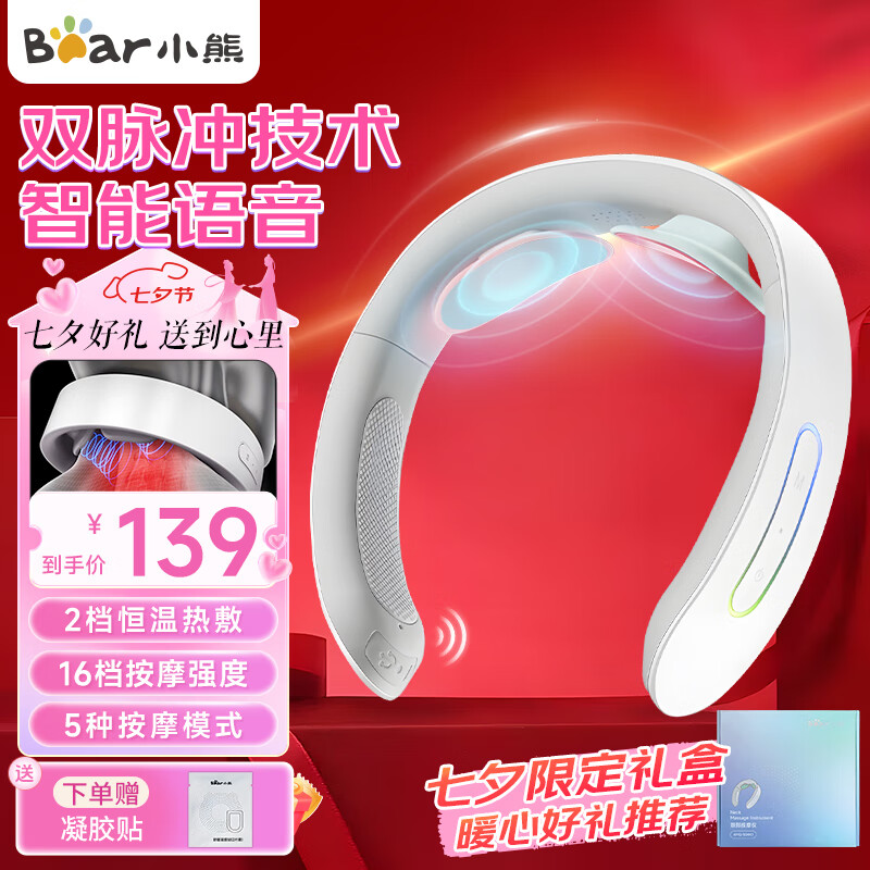 小熊(Bear)颈椎按摩器 颈椎按摩仪 颈肩按摩双频脉冲按摩仪 热敷护颈仪送男女友生日七夕情人节礼物AMQ-B04K1价格:169.00元!