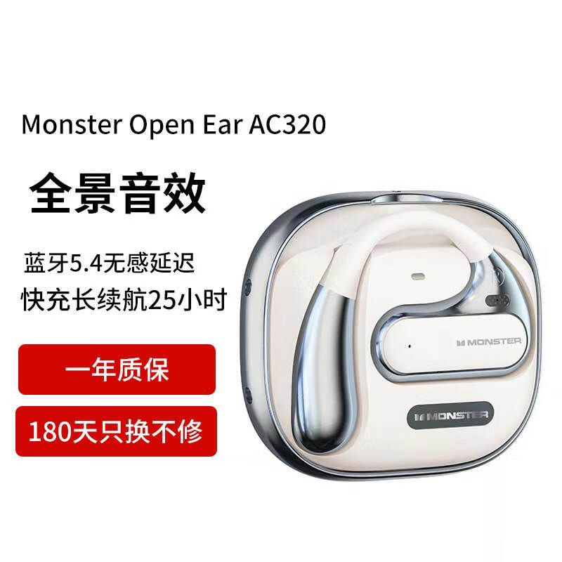 魔声(MONSTER)Open Ear AC320蓝牙耳机挂耳式开放式运动耳机通话手机通用 皓月银价格:109.00元!