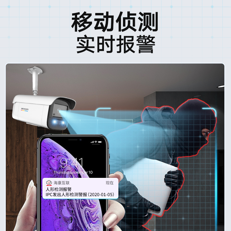 HIKVISION海康威视臻全彩监控摄像头400万室内室外智能警戒网络摄像机POE供电3T47FWDA4-LS 4mm价格:665.00元!