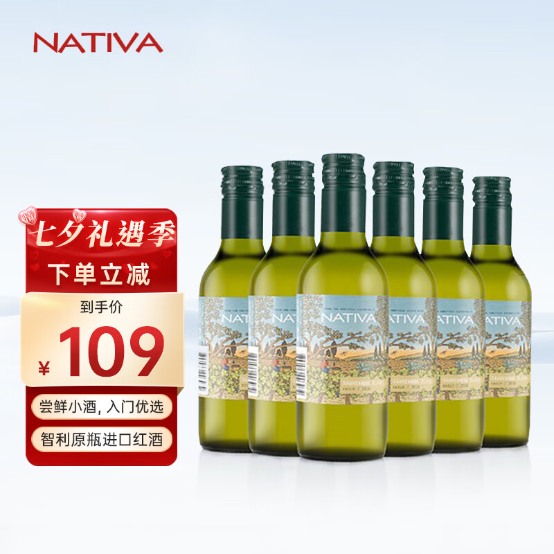 NATIVA 娜缇瓦长相思小瓶干白葡萄酒187.5ml*6瓶礼盒装智利进口七夕送礼价格:109.00元!