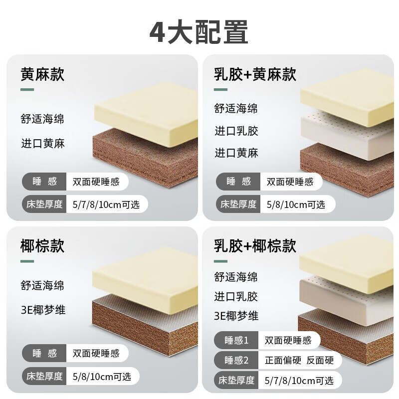 雅兰椰棕床垫偏硬舒脊学生薄床垫宿舍床垫 硬核椰棕款【10cm】1.5*2米价格:1899.00元!
